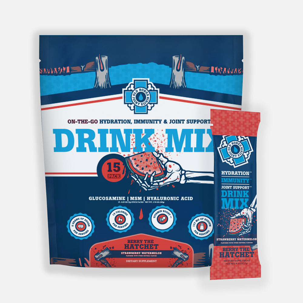 Old Bones Joint Elixir comes in two bold, refreshing flavors designed to crush thirst without the sugar overload. Lemon Lime delivers a crisp, tart punch with a clean finish that’s never too sweet—like a fresh squeeze of citrus in every sip. Strawberry Watermelon brings a juicy, summery blend of ripe berries and refreshing melon, perfectly balanced for a light, smooth taste you’ll actually look forward to drinking. Whether you’re recharging after a hard session or just need an everyday boost, both flavors keep hydration sharp, satisfying, and wickedly delicious.