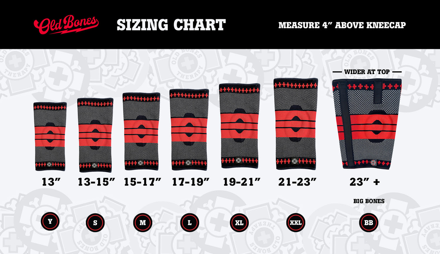 Measure 4 inches above the top of kneecap... From there measure the circumference of your leg and use the sizing chart below.